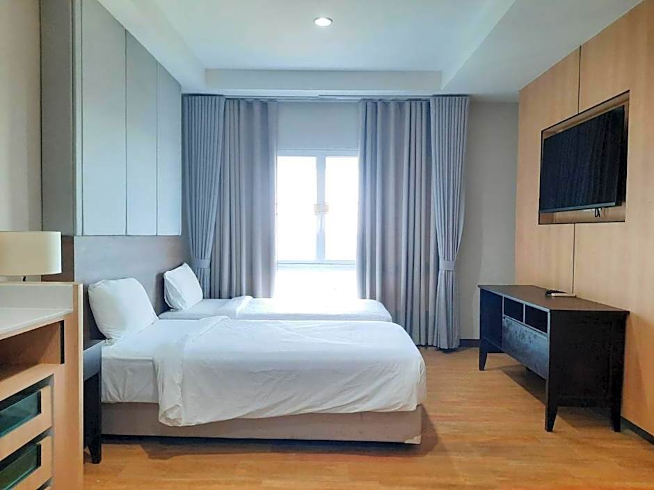 Providing free toiletries, this twin room includes a private bathroom with a shower and a hairdryer. The twin room's kitchenette, which features a refrigerator, is available for cooking and storing food. The spacious twin room provides air conditioning, a tea and coffee maker, a seating area, a dining area, as well as a flat-screen TV with cable channels. The unit offers 2 beds.